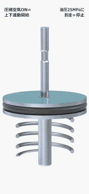 ピストンは上下運動をくり返して油を送りだし、油圧が25MPaになると停止する