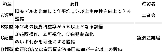 また、対象設備は以下A~D類型のいずれかに該当させる必要があります。