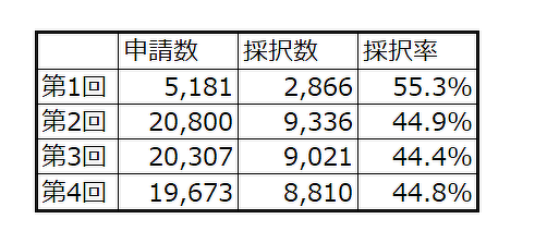 今までの採択率はおおよそ47%程度となります。
