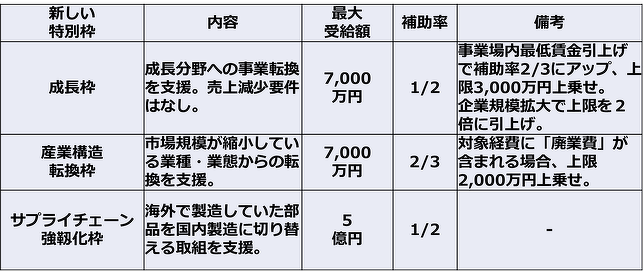 さらに促進させるのが目的です。また、「グリーン成長枠」も「成長枠」と同様、売上減少要件が撤廃されています。
