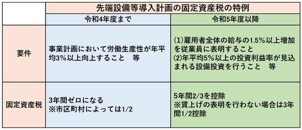 昨年度ま では「事業計画において労働生産性が年平均3%以上向上すること」等の条件を満たせば、固定資産税が3年間ゼロになる特例を受けることができました。