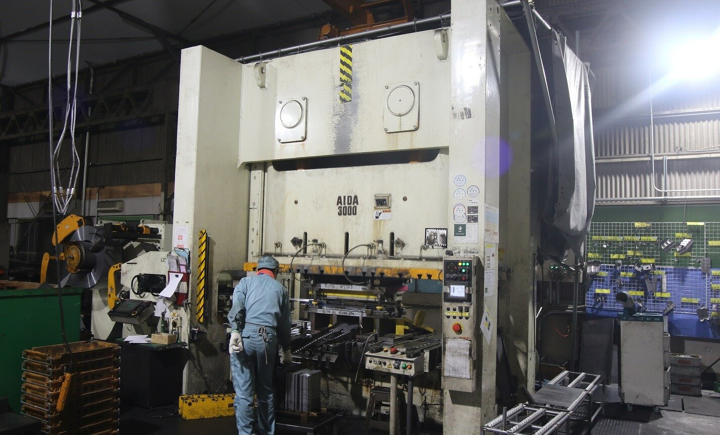大阪府東大阪市に本社をおく上田産業株式会社様は自動車のボディ部品を生産するプレス加工メーカー。単発プレスと搬送用ロボットで構成するラインは、その加工精度とスピードで絶大な信頼を得ています。