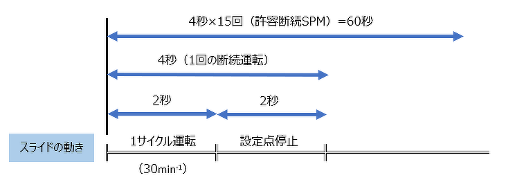 許容断続SPMとは、プレス機械が1分間に何回の断続運転を行うことが出来るかを示すものです。