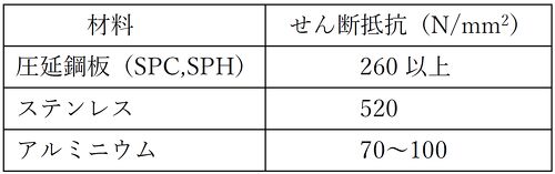 σs:加工材のせん断抵抗(N/mm2)※表2参照