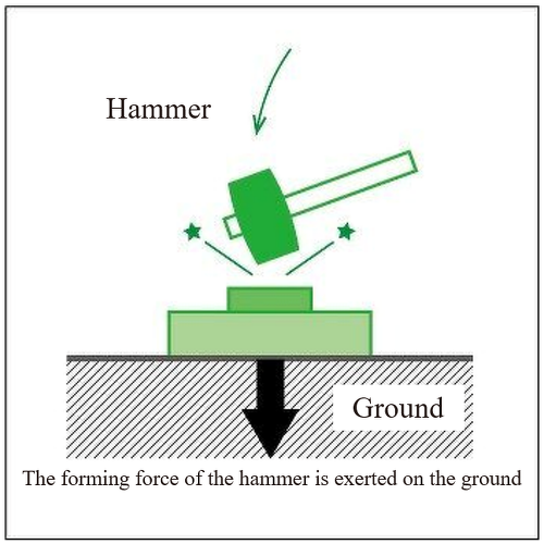 In the case of a hammer, the reactive force generated between the dies is being exerted on the ground.