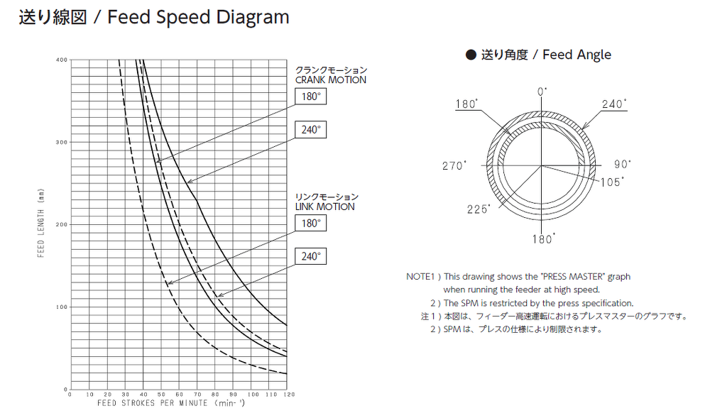 The relationship between the feed length and the strokes per minute (SPM) is shown in the Feed Speed Diagram.