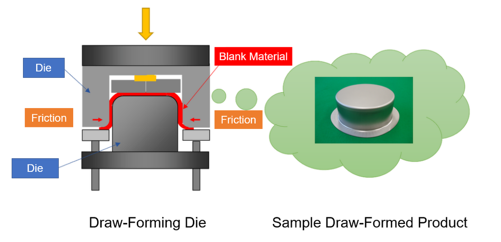 A1: Press metalforming is the process of forming a material into the shape of a die by placing material between an upper and lower die and applying heavy pressure. Because the material is formed by being forcefully pressed against the die, depending on the forming application, the dies and workpieces may become scratched and/or workpieces may crack due to friction, or seizing may occur due to friction-induced heat. Accordingly, press metalworking lubricants are used for many press metalforming applications, where the lubricant is applied to the surface of the material or to the die surfaces to create an oil film on the metallic surfaces that serves to reduce friction, thereby protecting dies and workpieces from scratches and from cracking issues. Press metalworking lubricant types include oil-based lubricants, water-soluble lubricants, dry lubricant films, and plastic films, and the type that is used varies depending on the application.