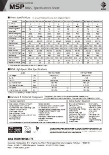 | Die height | (mm) | 420~480 | 420~520 | 470~520 | 520~620 | 520~620 | 500~600 | 500~600 | 600~650 |
