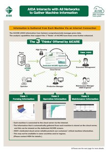 AiCARE is used to collect press "sensing data." This enables users to proactively prevent line stoppages, to clearly understand and remedy the causes of stoppages, and to boost their utilization rates.
