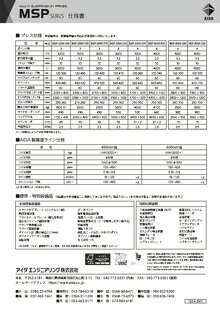 | 型式 | 単位 | MSP-2200-200 | MSP-3000-230 | MSP-3000-270 | MSP-3000-330 | MSP-3000-370 | MSP-4000-280 | MSP-4000-330 |